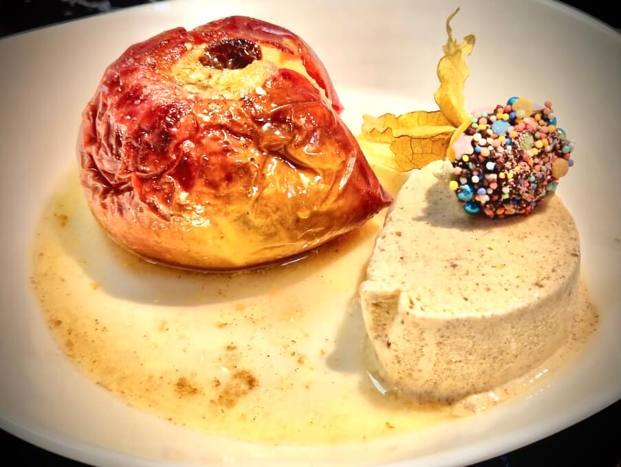 mit Braunem Zucker bestreuen. Mit Apfelsaft angiessen und im Backofen