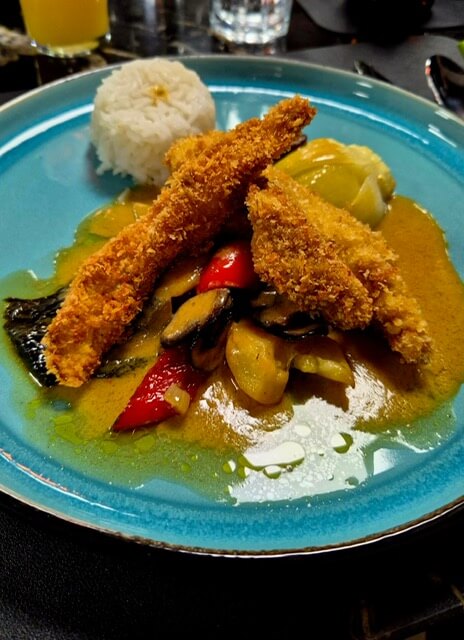 Alles in Öl kurz anrösten, Currypaste zugeben und nach und nach mit der