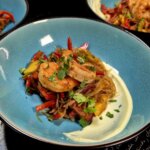 Kokosmilch angiessen. Mit Fischsauce abschmecken und mit Thai-Basilikum
